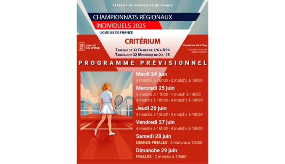 Retrouvez le programme prévisionnel des matchs et RDV sur Ten'up pour voir les tableaux en direct :