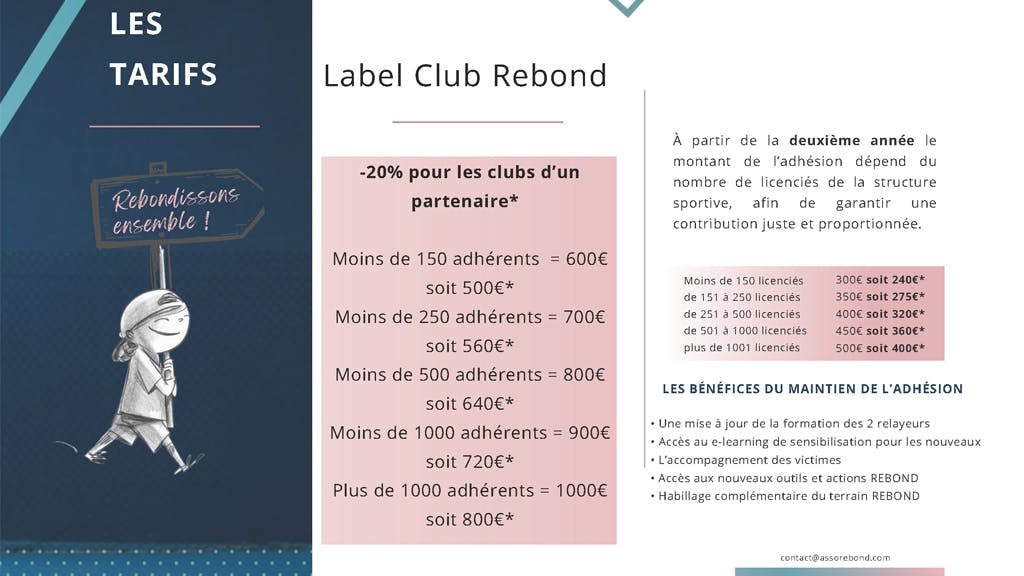 Cette adhésion ouvre également la possibilité à tous les clubs de tennis du Val d’Oise d’obtenir le tarif réseau partenaire pour l’adhésion à Rebond et son Label (-20%).